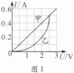 7. 如图1所示是电阻甲和乙的I-U图像,下列说法正确的是(