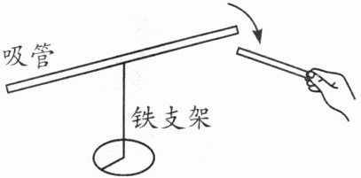 9. 用一段细铁丝做一个支架,作为转动轴,把一根中间戳有小孔(没有戳穿)的吸管放在转动轴上,吸管能在水平面内自由转动。用餐巾纸摩擦塑料吸管使吸管带电。