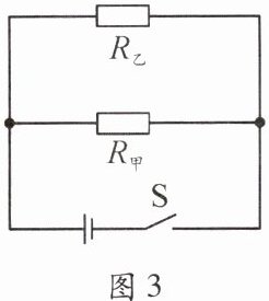 D选项,图3中两电阻并联,根据并联电路的特点和图像,当$U=2V$时,$I_{甲}=0.4A$,$I_{乙}=0.2A$,总电流$I=I_{甲}+I_{乙}=0.6A$,D错误。