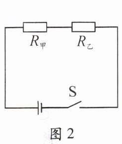 C选项,图2中两电阻串联,根据串联电路的特点和图像,当$I=0.2A$时,$U_{甲}=1V$,$U_{乙}=2V$,电源电压$U=U_{甲}+U_{乙}=3V$,总电阻$R=\frac{U}{I}=\frac{3}{0.2}=15\Omega$,C正确。