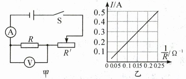 一定,根据实验的数据绘出了$ I-\frac{1}{R} $图像,如图乙所示。分析图像可知,当导体的电阻为 20