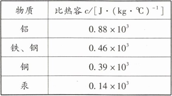 | 物质 | 比热容$c/[J·(kg·℃)^{-1}]$ |