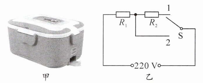 8. 如图甲所示是某款电热饭盒,部分参数如表所示,其简化电路如图乙所示,$R_{1}$、$R_{2}$均是发热电阻(阻值不随温度变化),则: