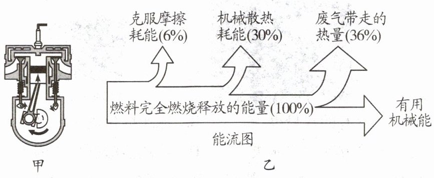 8.汽车是现代生活中最常见的一种交通工具,如图甲、乙所示分别是某汽油机的某冲程及能量流向图。下列说法错误的是 (