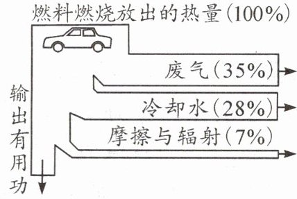 (2)由能量流向图可知,该汽车的热机效率: