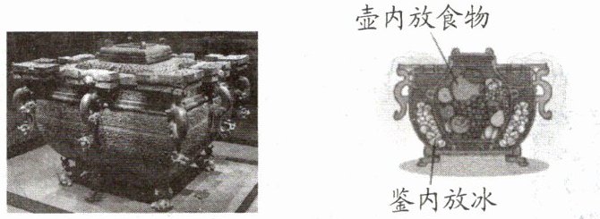 2. 【古代科技】如图所示是曾侯乙墓曾出土过一种铜制冰鉴,这种冰鉴有内外两层,外为一方鉴,内装一方壶,盛夏之时方鉴盛冰,方壶就能保存食物或酒水。下列说法中正确的是 (