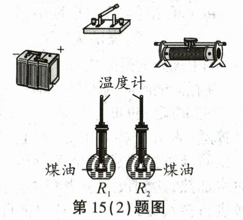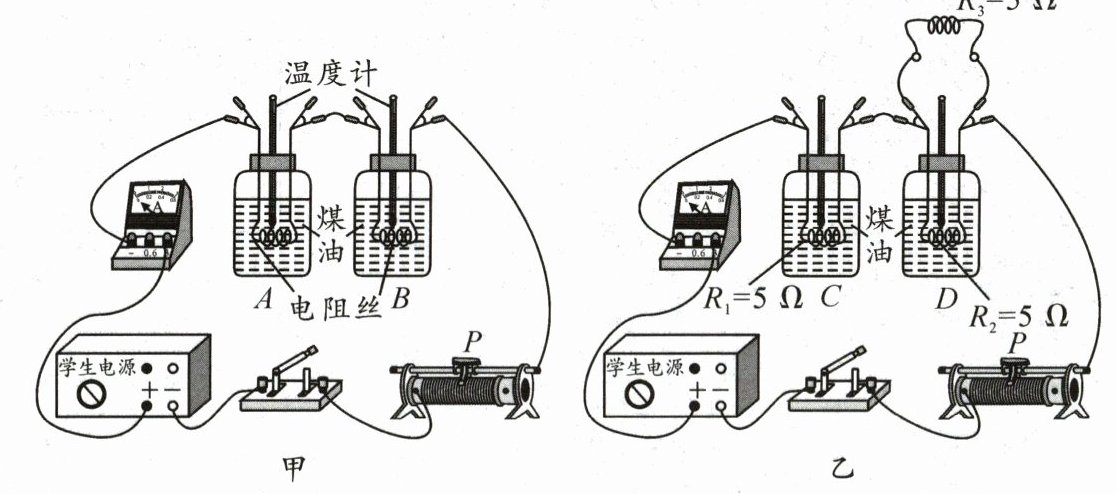 (2)图甲中,$R_A与R_B$采用串联的方式,其目的是控制通电时间和______相等,选用的$R_A和R_B$的阻值大小______(选填“相等”或“不相等”),实验中选用煤油而不选用水,主要是因为水的______比煤油大。