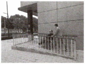 例2-3 如图所示,为方便残疾人上下台阶,一些公共场所设计了残疾人专用通道(如图所示),其实质是斜面。小明将重$ 750\ N 的人和轮椅沿 8\ m 长的斜面推上 1\ m $高的平台,沿斜面所用的推力为$ 125\ N $,所用时间为$ 10\ s $,则小明做的功是