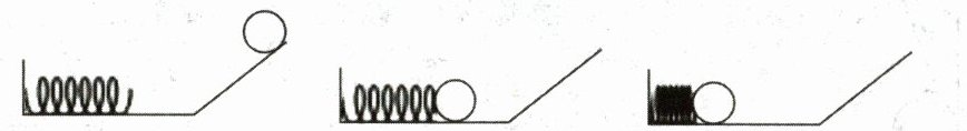 14.如图所示,从斜面上滚下来的小球,接触弹簧后,将弹簧压缩至最短。在这一过程中,小球的