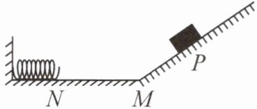 9. 如图所示,斜面与水平面在M点通过小圆弧相连,弹簧左端固定,原长是右端在N点,小物块从斜面上P点由静止滑下,与弹簧碰撞后又返回到斜面,最高点位于P点的下方,则下列说法中正确的是(