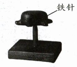 3.《事林广记》中记载了“指南龟”(如图所示)的制法:先以木刻龟,在龟体上沿首尾方向开一洞,放入条形磁石,以黄蜡填满,在龟尾部嵌入一铁针与磁石一端相连,将木龟支于竹针之上,使木龟转动,静止后,针指南。下列说法中正确的是 (