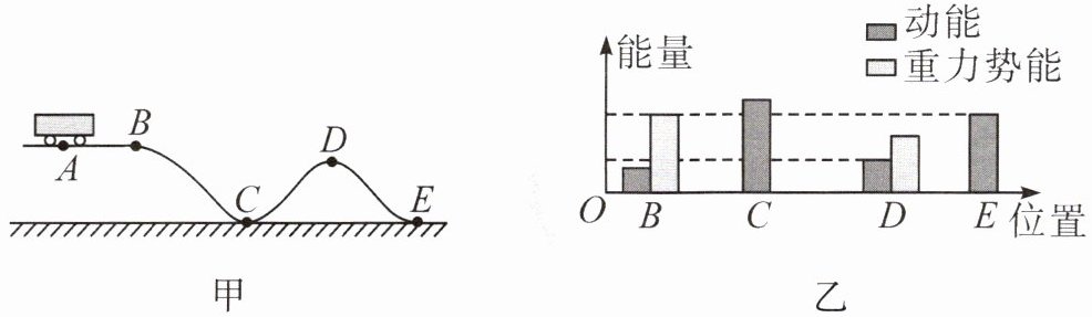 从图乙中可以看出,B点的重力势能大小明显大于E点的动能大小。