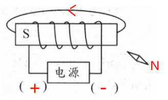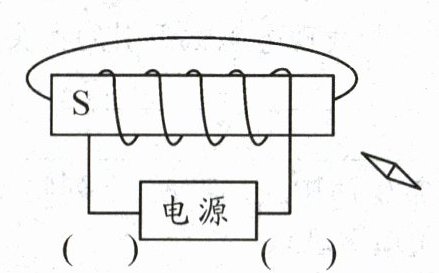(2)如图所示,在图中根据通电螺线管的S极,标出磁感线方向、小磁针的N极和电源的正、负极。