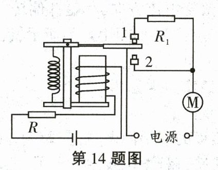 14.如图所示是智能扶手电梯工作原理图,其中R是压敏电阻,电磁铁上端是