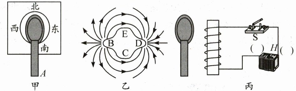 (2)1952年,中国科学院物理研究所尝试制作一具司南,如乙所示,制作人员根据天然磁石的磁感线分布,将磁石的______(选填“B”“C”“D”或“E”)处打磨成磁勺的A端。