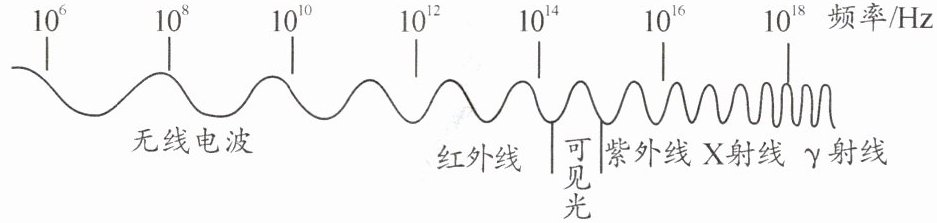 由电磁波谱可知,频率越低,波长越长。从图中可以看出无线电波的频率比X射线的频率低,所以无线电波的波长比X射线的长,该选项错误。