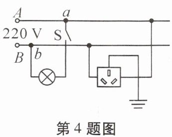 选项D:断开开关S后,a点与火线相连,光脚站在地上的人接触a点,电流会通过人体导入大地,会发生触电事故;b点与零线相连,接触b点不会触电,所以该选项错误。