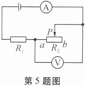 5. 如图所示,电源电压不变,滑动变阻器的滑片P从a端滑到b端的过程中(