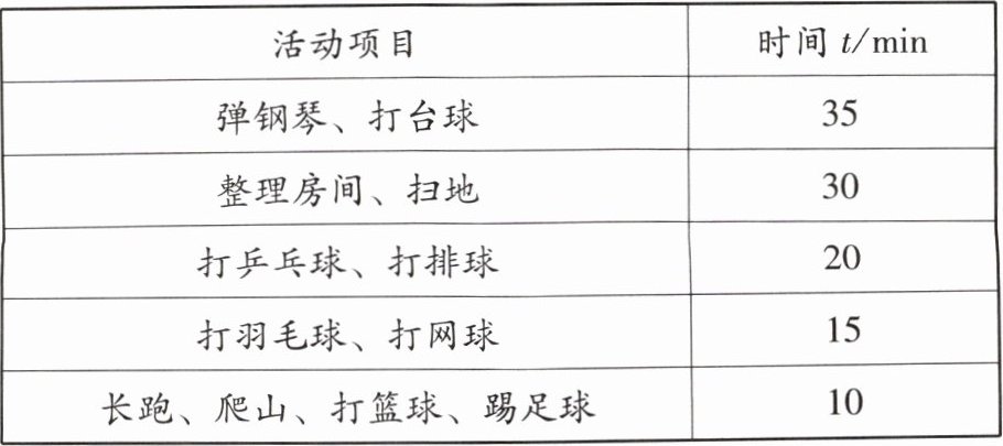 表3 某同学进行各项活动消耗$3.8×10^{5}\ J$热量所需的时间