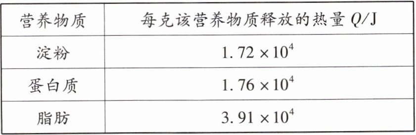 淀粉提供的热量:$100g×1.72×10^4J/g=1.72×10^6J$;