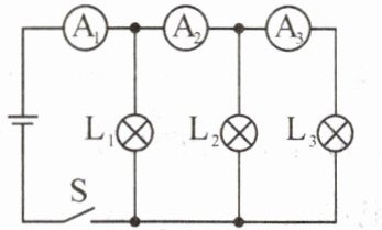 解:由图可知,三灯并联,电流表A₃测L₃电流,A₂测L₂和L₃总电流,A₁测干路电流。