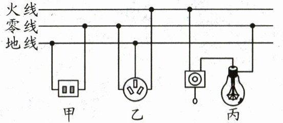 C. 家庭电路中各用电器并联,乙处插座与丙灯并联,C错误。