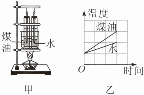 4. 如图甲所示,用规格相同的两试管分别装上质量相同的煤油和水,隔着陶土网同时对两试管加热,煤油和水每秒吸收的热量相同,图乙中的图线反映了该实验情况。由图乙可知 (