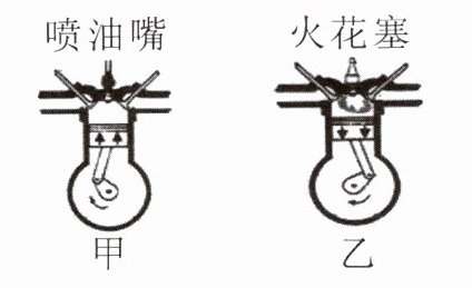 甲是柴油机的压缩冲程;乙是汽油机的做功冲程。