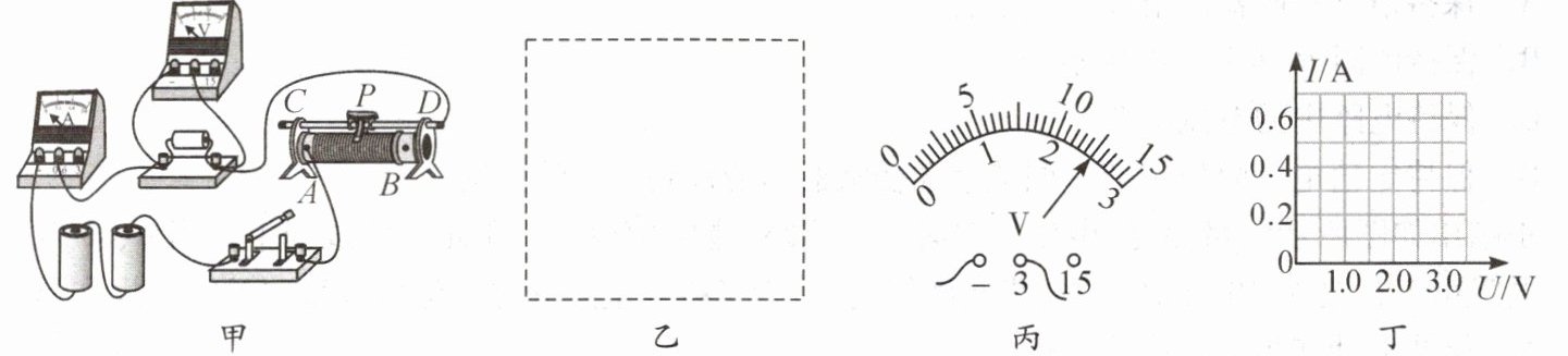 (3)图丙中电压表选择的是$0\sim3V$量程,分度值为$0.1V$,其示数为$2.5V$。