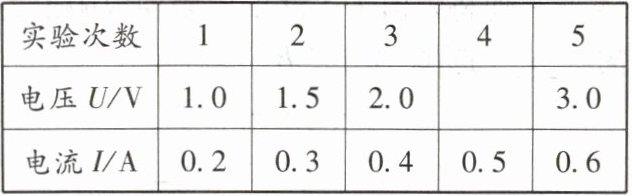 | 电流I/A | 0.2 | 0.3 | 0.4 | 0.5 | 0.6 |