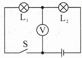 解:由电路图可知,L₁与L₂串联,电压表测L₁两端电压。