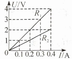 从图像中可知,此时通过$R_1$的电流$I_1 = 0.2A$,通过$R_2$的电流$I_2 = 0.1A$。
