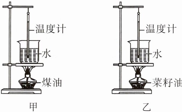 。[水的比热容为$4.2×10^{3}\ J/(kg·℃)$](6)若将图乙中酒精灯中的菜籽油更换成煤油,并将火焰大小调整成与图甲相同;同时将图乙烧杯中的水更换成等