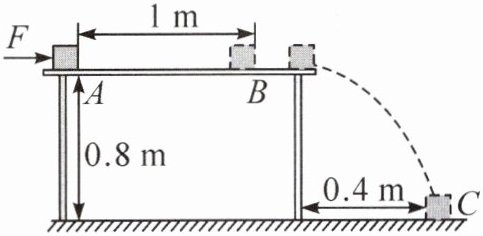 练习2-2 如图所示,用10 N的推力将桌面上重20 N的物体以0.6 m/s的速度由A处水平推动1 m到达B处后,撤去推力。物体由于惯性继续向前运动了0.2 m,最后掉到地面C处。在此过程中,推力对物体做功