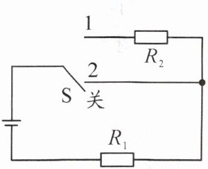当S切换到2时,电路为R₁的简单电路,电阻较小,根据P=U²/R,功率较大,为高温挡;当S切换到1时,R₁与R₂串联,电阻较大,功率较小,为低温挡。