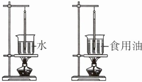 的水和食用油的烧杯分别放在陶土网上。(3)将两支温度计分别挂在铁架台的支架上,并将玻璃泡全部浸入液体中,读出此时水和食用油的初温,填入表中。