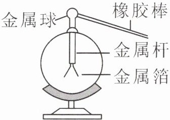 练习3 用毛皮摩擦过的橡胶棒接触验电器的金属球,验电器的金属箔片张开,如图所示。下列说法正确的是 (