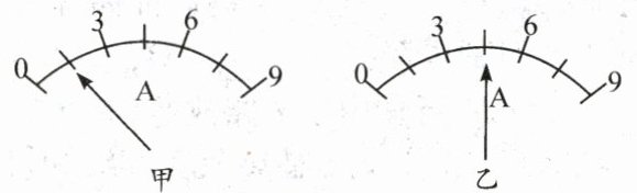 (3)已知电流表有两个量程,只知道大量程是0~9 A,小量程刻度值未标明,王强为了探究电流表的小量程是多少,他先用大量程测一较小的电流,其示数如下图甲,再改用小量程测同一电流,指针指在如下图乙的位置。他测得的电流值是______A。