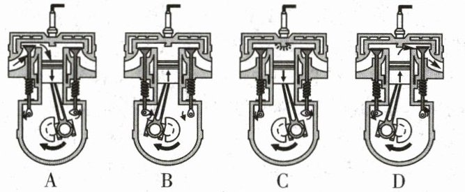 (1)在四冲程内燃机中,提供动力的是做功冲程,此冲程中两气门都关闭,活塞向下运动,高温高压的燃气推动活塞做功,将内能转化为机械能,故由图可知,C图是做功冲程。