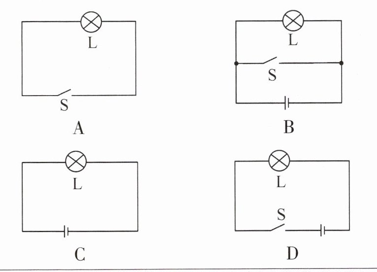 A选项只有导线和用电器,缺少电源和开关,结构不完整,不能正常工作。