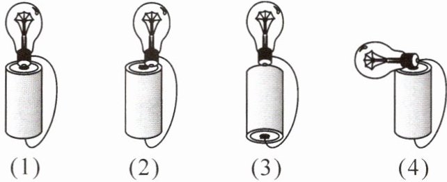 4. 用一段导线、一节干电池,设法使一个小灯泡发光,其中电池上端的盖片为金属片,小华尝试了如图所示的四种连接方法,下列判断正确的是 (
