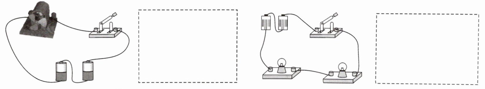 本题考查根据实物电路图画出对应的电路图,需要识别电路的连接方式(串联或并联)以及各元件的位置关系,然后按照电路图的规范进行绘制。对于图甲,电流从电源正极出发,依次经过开关、灯泡,最后回到电源负极,是简单的串联电路;对于图乙,两个灯泡并联,开关在干路上控制整个电路。