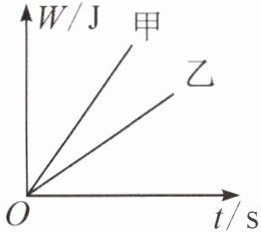 从图像中可以看出,在相同时间$t$的情况下,甲物体做的功$W_{甲}$比乙物体做的功$W_{乙}$多。