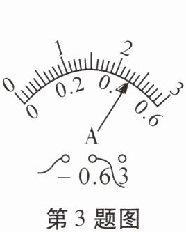 指针指在4个小格处,所以所测的电流值是$0.02A×4=0.08× 5=0.44A$(因为$0\sim0.6A$量程,每一大格为0.2,被分为5份,一份为0.04,指针指在第十一个小格处,也可以直接通过$0.02× (10+1) =0.4+0.04=0.44$得到答案)。