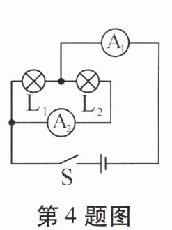 4. 如图所示,开关S闭合时,灯$L_1$和$L_2$是