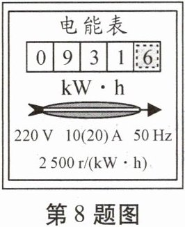 8.小明家的电能表如图所示,其中“(20)A”表示