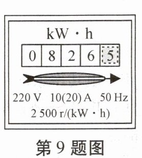 9.小华家电能表4月底的示数如图所示,5月底的示数为08663,则小华家5月份消耗的电能为