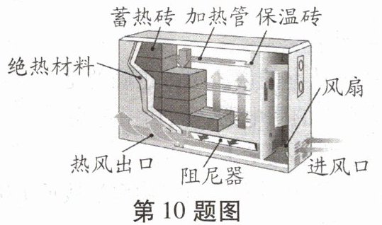 10.如图所示,蓄热砖式电暖器工作时先通电加热内部蓄热砖,蓄热砖达到设定高温后断电,在不通电情况下蓄热砖仍能长时间对外放热。则蓄热砖式电暖器(