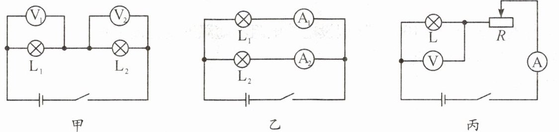 11. 在“探究小灯泡的电功率与哪些因素有关”的实验中,小东设计了下面甲、乙、丙三个电路图。