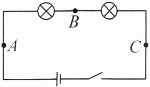 6. 在探究串联电路电流关系的活动中,小路连好如图所示的电路后,用电流表测出A、B、C处的电流分别为$I_{A}= 0.4A$,$I_{B}= 0.4A$,$I_{C}= 0.4A$,并将数据记录在表格中,下一步应该做的是(